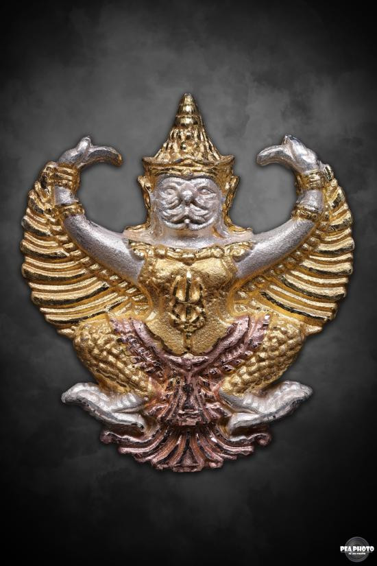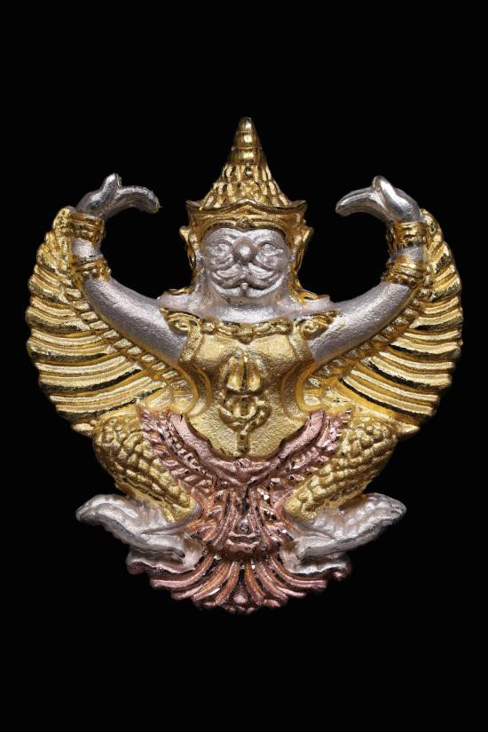 องค์พญาครุฑ รุ่น มหาราช (จปร.) เนื้อ3k ของ วัดโพธิ์ทอง วัตถุมงคลรุ่นนี้จัดสร้างโดย พระอาจารย์วราห์ ปุญญวโร (หรือหลวงพ่อวราห์) ซึ่งเป็นที่รู้จักในนาม "ราชาแห่งครุฑ" โค๊ด ว รัศมี ปี2539 |