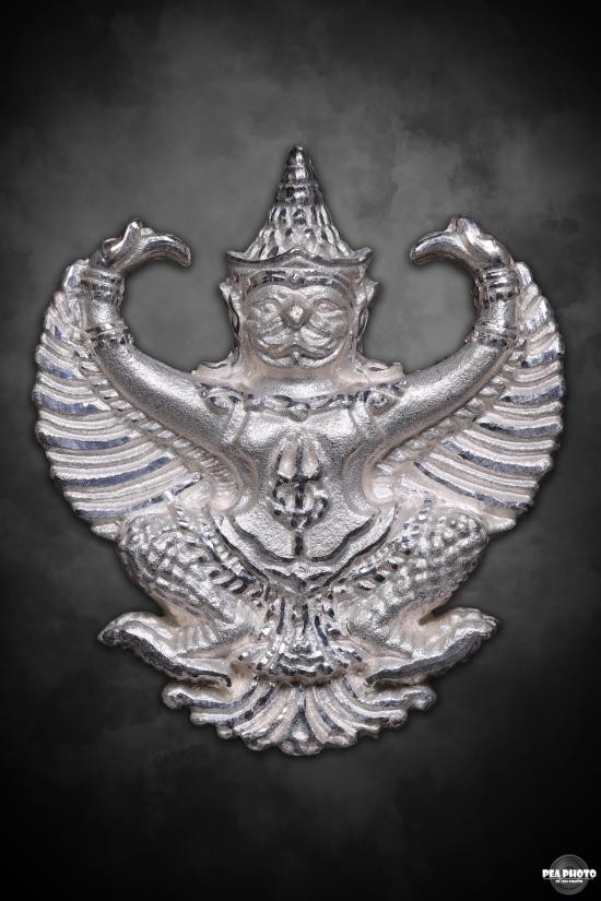 องค์พญาครุฑ รุ่น มหาราช (จปร.) เนื้อเงิน3k ของ วัดโพธิ์ทอง วัตถุมงคลรุ่นนี้จัดสร้างโดย พระอาจารย์วราห์ ปุญญวโร (หรือหลวงพ่อวราห์) ซึ่งเป็นที่รู้จักในนาม "ราชาแห่งครุฑ" โค๊ด ว รัศมี ปี2539 |
