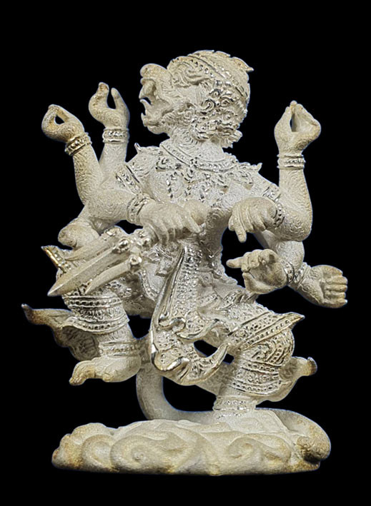 รูปหล่อองค์เทพหนุมาน รุ่นสะท้านไตรภพ พิธีพุทธาภิเษก ณ.ศาลพระกาฬ จ.ลพบุรี ปี2547เนื้อเงินพ่นทรายขัดเงา ตอกโค๊ต๙ ตอกเลข225สภาพสวย no.1 |