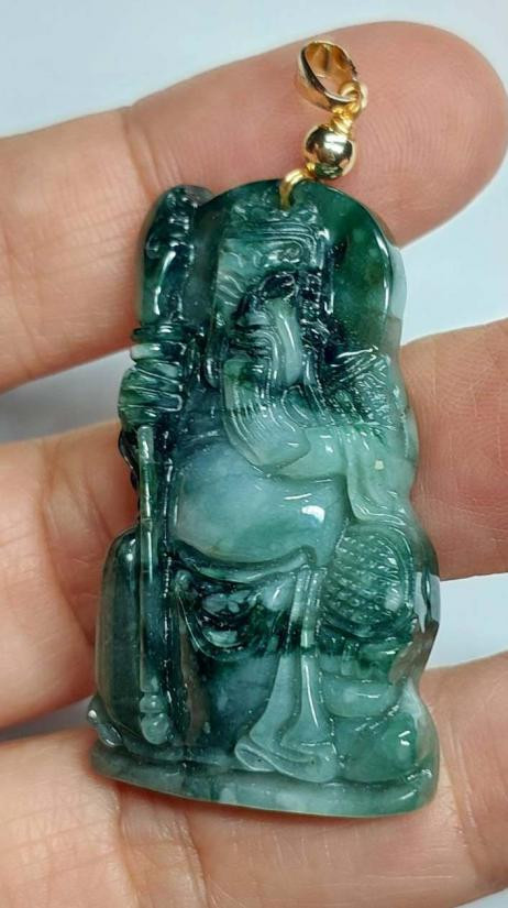 ***วัดใจ***จี้หยกเทพเจ้ากวนอู หยก3สีพม่า เนื้อโอเชียนบลู ขนาดสูง 2 นิ้ว |