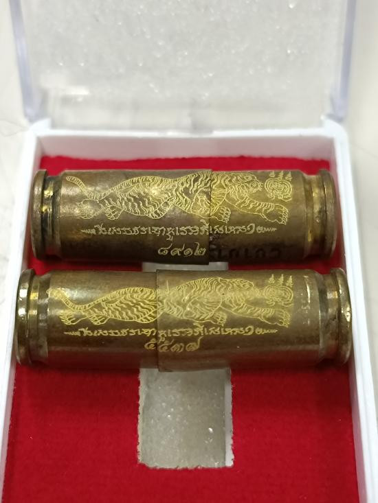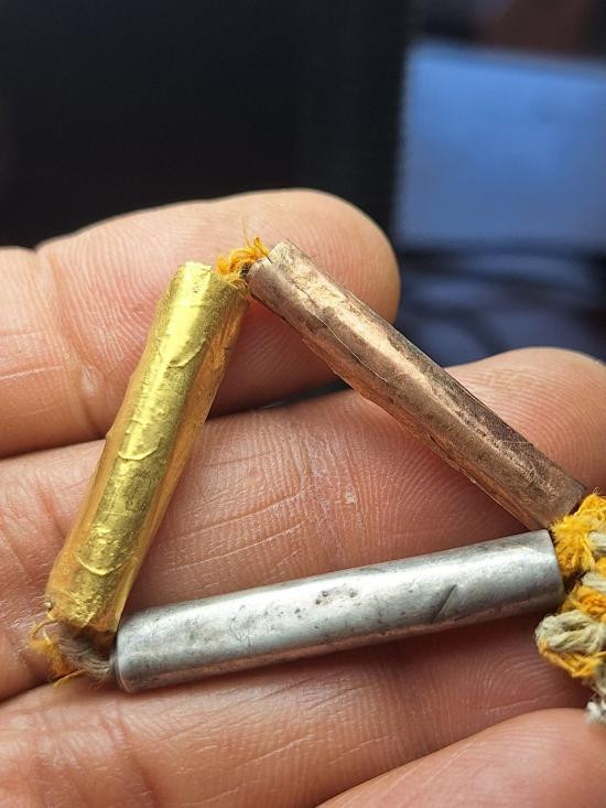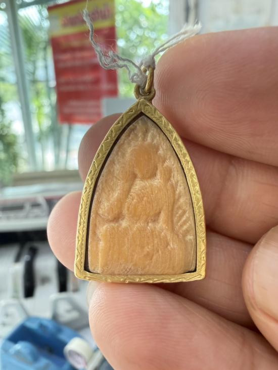 ตะกรุดงาแกะ สอดใส้ตะกรุด มีจารบางๆ เลี่ยมทองคำแท้ |