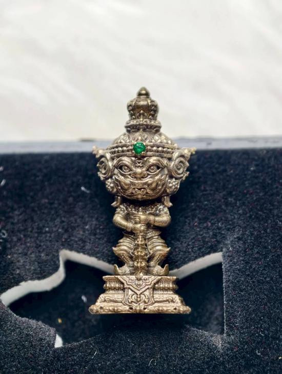 เคาะเดียวแดง หลวงปู่บุดดา วัดป่าใต้พัฒนาราม ท้าวเวสสุวรรณ รุ่น บันดาลทรัพย์เรียกเงิน เรียกทอง เนื้อเงินยวงฝังพลอยเขียว เลข 557 กล่องเดิม |
