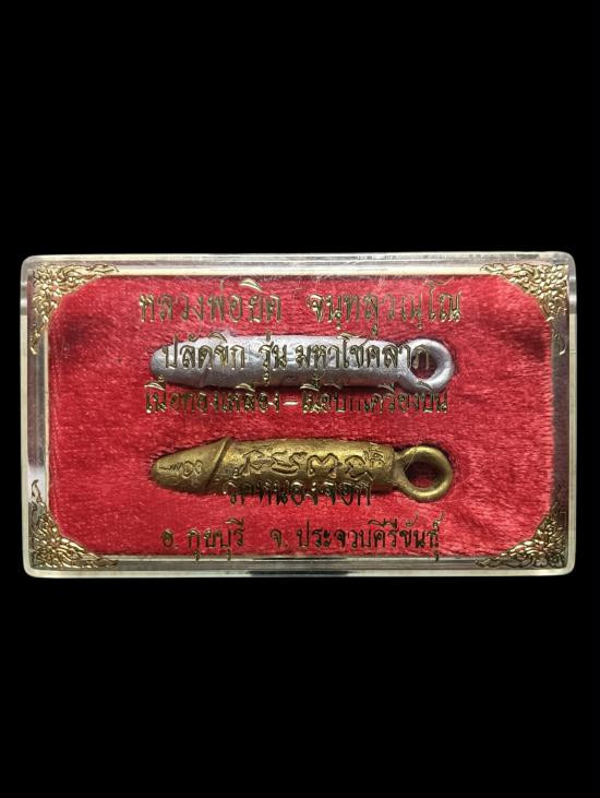 ปลัดขิก หลวงพ่อยิด วัดหนองจอก ประจวบคีรีขันธ์ ปี 2535 รุ่นมหาโชคลาภ ทองเหลือง + ปีกเครื่องบิน มีกล่อง สวยมากครับ |