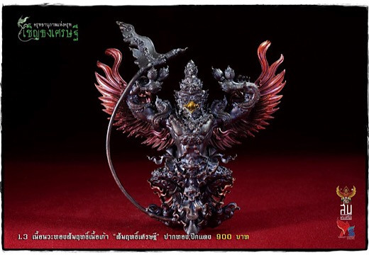 เคาะเดียวแดง 250 พญาครุฑทรงมหิธานุภาพ เชิญธงเศรษฐี วัดครุฑธาราม จ.พระนครศรีอยุธยา พิมพ์ใหญ่ สูง 4.5 ซ.ม. เนื้อนวะทองสัมฤทธิ์เนื้อเก้า ปากทอง ปีกแดง ซีลเดิมยังไม่ได้แกะ |