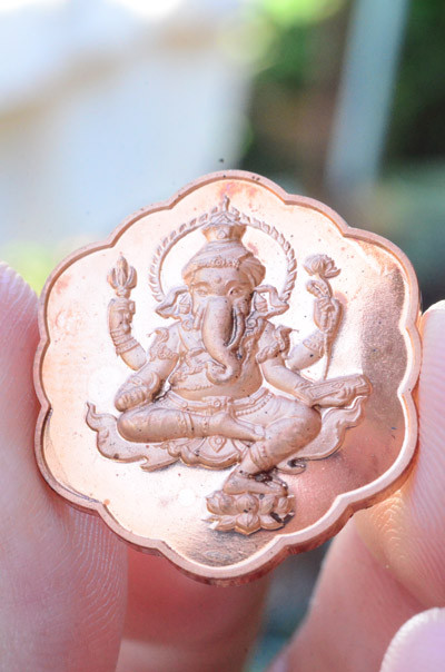 เหรียญพระพิฆเนศ หลัง วัชรเทพ วัดเทพพุทธาราม จ.ชลบุรี ปี 2559 ตอกโค๊ต สวยครับ |