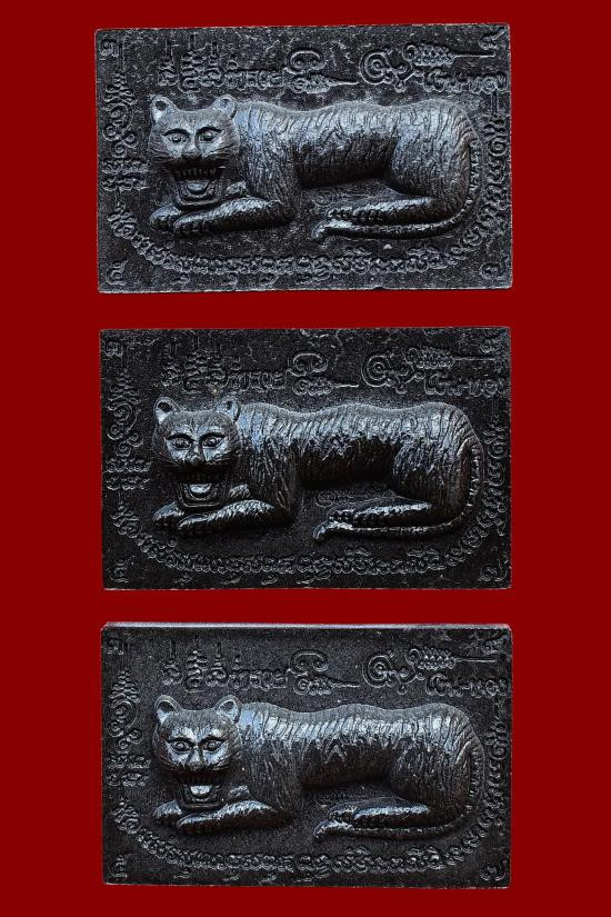 ชุด 3 องค์...เสือนอนกินทรัพย์สินพูนทวี เนื้อดำผงตรีนิสิงเหคลุกน้ำมันเสือ หลังโรยขนเสือ ปี 2551 หลวงปู่นิเวศน์ วัดทุ่งกระเจ็ด จ.สุพรรณบุรี พร้อมซองรูปใบฝอยเดิมจากวัด |