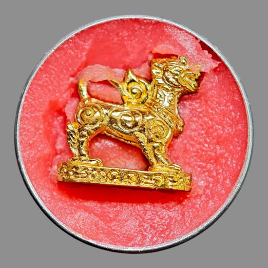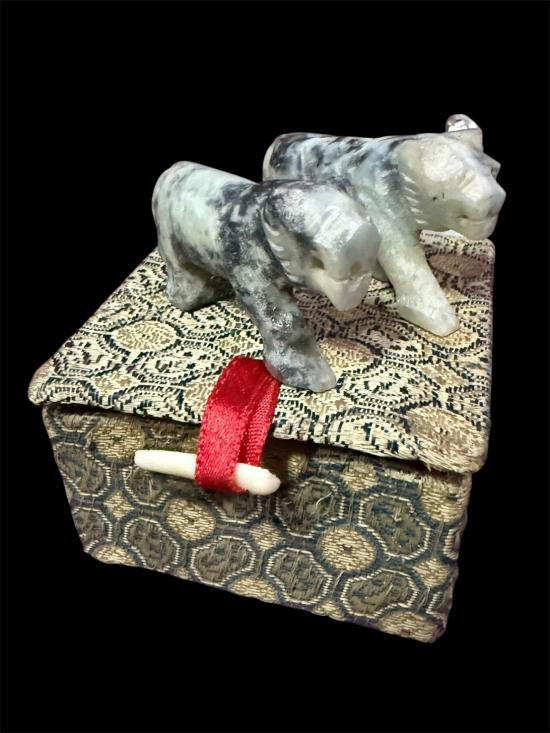 พญาเสือเจ้าพยัคฆ์ตัวจ่าฝูง (มหาอำนาจ มหาปราบ) เนื้อกระดูกแกะ ใต้ฐานหลวงปู่จารยันต์กำกับไว้ทุกตัว สร้าง 189 ตัว ปี 2551 หลวงปู่เฉลิม วัดบุญนาคประชาสรรค์ จ.สมุทรสงคราม |