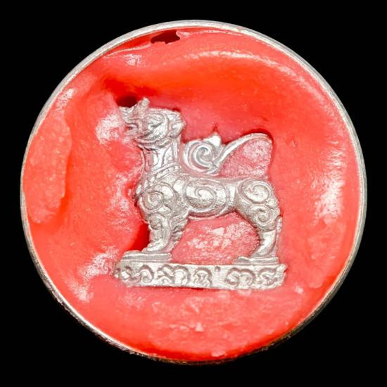 เบี้ยแก้ รุ่นสุริยุปราคา ตะกรุดเงิน หลวงพ่อเกษม เขมโก ปี 2538 ติดรางวัลที่ 3 งานประกวดสมาคมพุทธมณฑล |