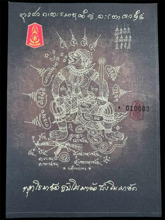 เคาะเดียว 300 ผ้ายันต์พหูรมานสีดำ no.010083 แม่ทัพภาคที่2.ทำแจกทหารชายแดนรอบที่2.หลวงปู่เมตตาอฐิฐานจิตเสกเดี่ยวอย่างเข้มขลัง(ผ้าแคนวาสสกรีนตรากองทัพภาคที่2)รันเลขนัมเบอร์พร้อมประทับหมึกเเดงตรากองทัพ |