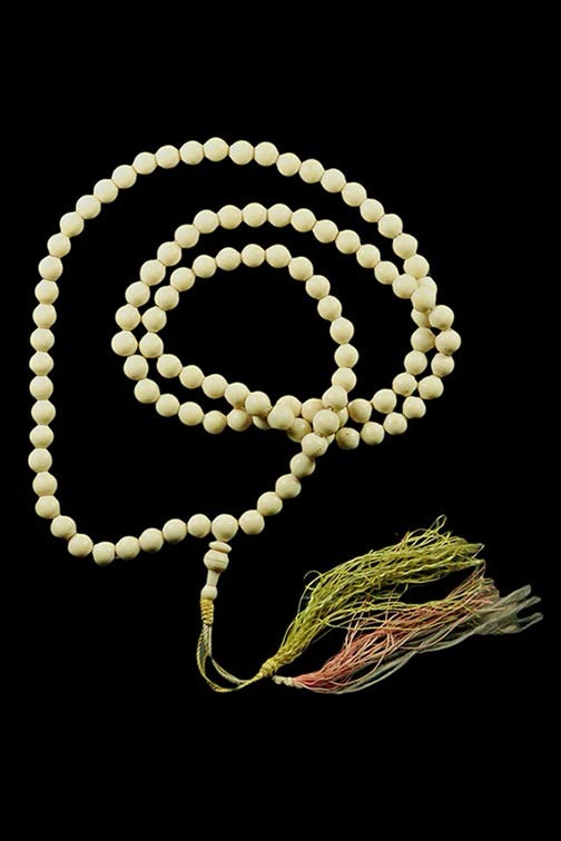 สร้อยประคำกระดูกกรามช้าง กับเหรียญ หลวงพ่ออุตตมะ วัดวังก์วิเวการาม กาญจนบุรี |