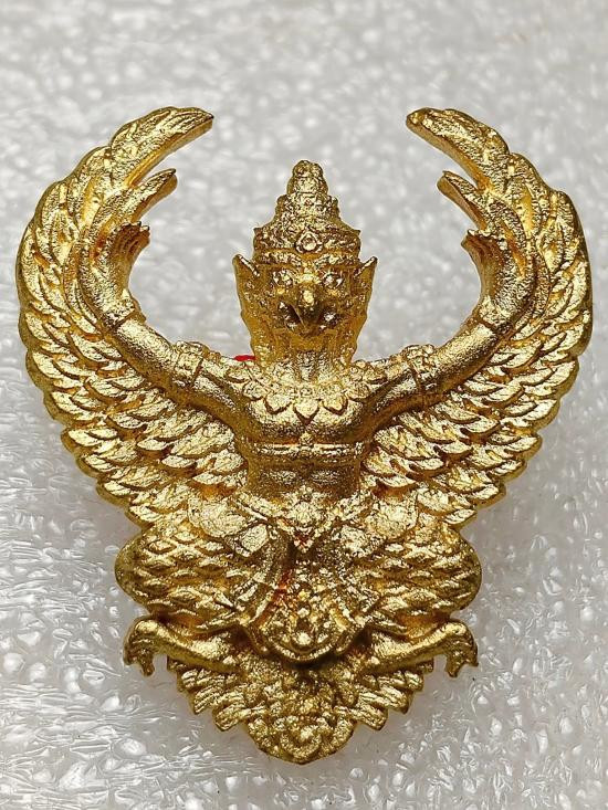เคาะเดียวแดง.....พญาครุฑ รุ่นจอมราชันย์ เนื้อกะไหล่ทอง ปี 2563 ด้านหน้าเป็นพญาครุฑ (อุ้มทรัพย์) ด้านหลัง ร.5 ปลุกเสกโดย หลวงพ่อวราห์ วัดโพธิทอง บางมด ตอกโค้ตชัดเจน |