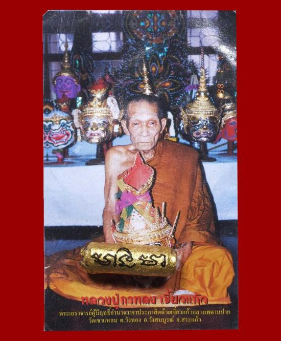รูปถ่ายพระเจ้าห้าพระองค์หลังตะกรุด หลวงพ่อเดิม วัดหนองโพ เลี่่ยมครอบกรอบเดิมครับ |