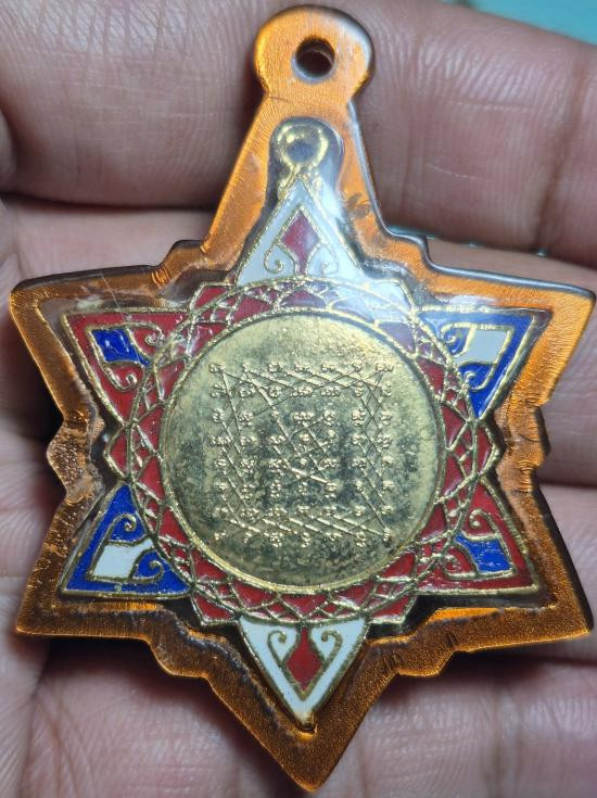 ล็อกเก็ตอิ่นแก้ว ตามตำราโบราณของพ่ออุ้ยตั๋น สุขสบาย พ่อครู เสกและลงยันต์ด้วยตนเอง ฉากทองพิมพ์จัมโบ้ ขนาด3x4cm หลังฝังตะกรุดเงิน-พลอยเสก เลข9 |
