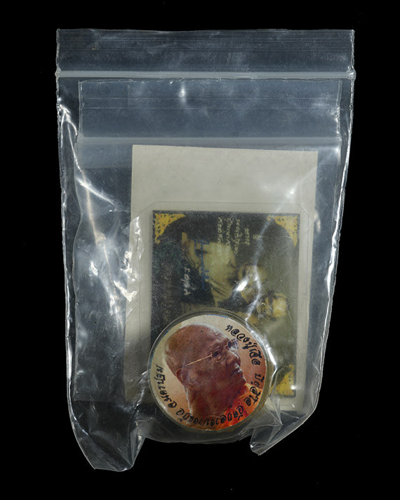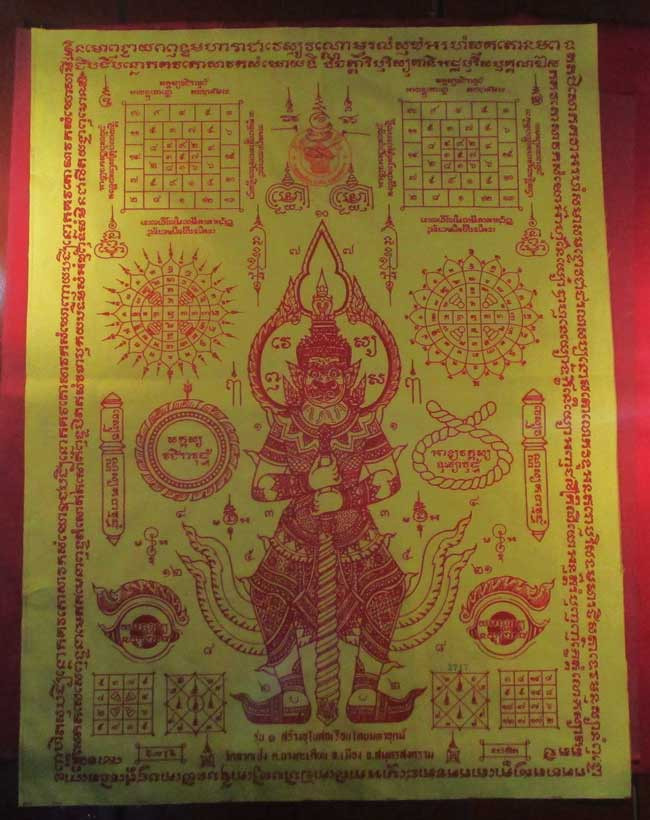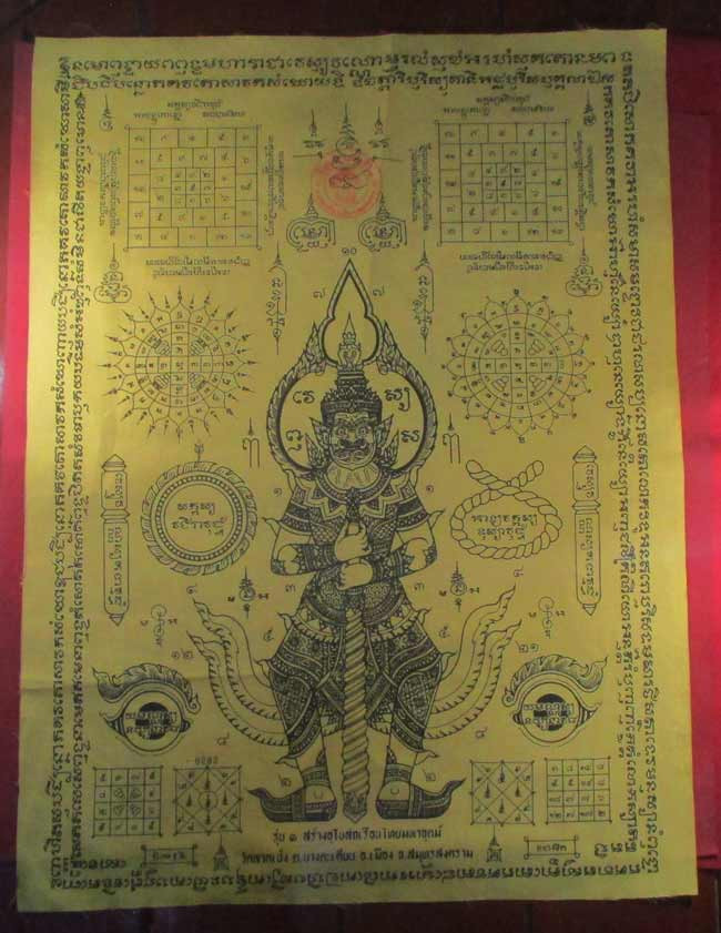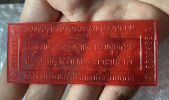 แผ่นยันต์พลาสติกแดง หลังหนังสือจีน หลวงพ่อโอภาสี อาศรมบางมด |