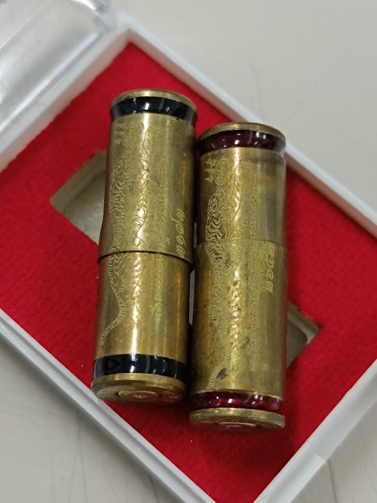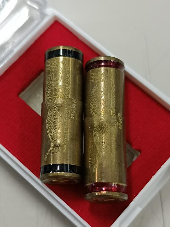 ตะกรุดปลอกลูกปืน รุ่น พยัคฆ์สยบไพรี รวย 100 ปี หลวงพ่อพัฒน์ วัดห้วยด้วน (ขนาดความยาว 3.5 ซ.ม.) หมายเลข 2652+3173 |