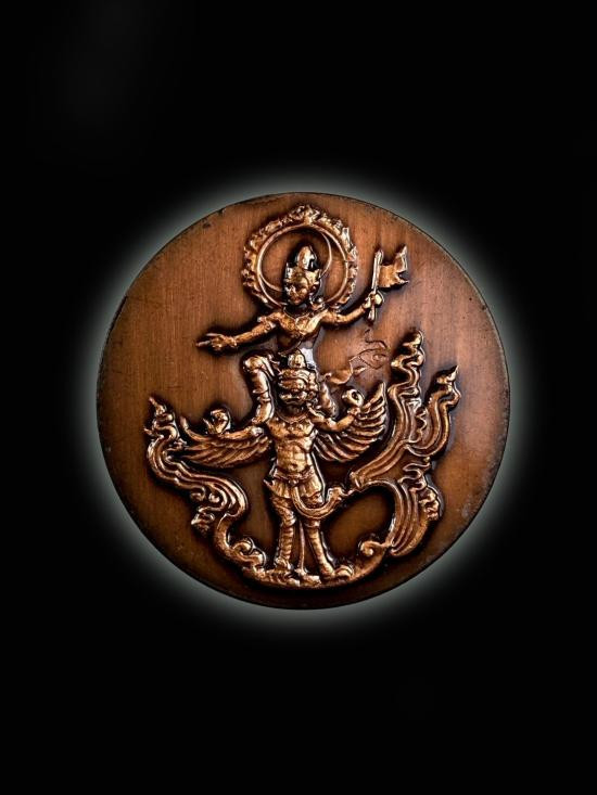 เหรียญพญาครุฑ หลวงปู่ศิลา วัดโพธิ์ศรีสะอาด รุ่นยอดบารมี ลังนำฤกษ์ เนื้อทองแดง ลงยาทรงเครื่อง ลงยาปีกครุฑ พื้นแดง No.74 |
