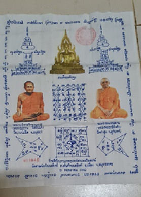 ผ้ายันต์ สมเด็จองค์ปฐม หลวงพ่อปาน-หลวงพ่อฤาษีลิงดำ วัดศาลพันท้ายนรสิงห์ ปี42 |