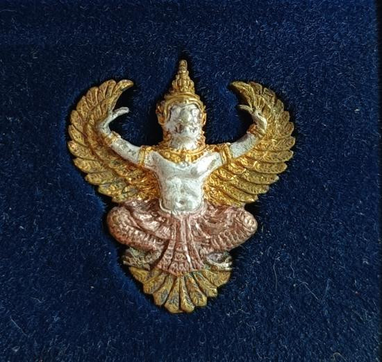 องค์พญาครุฑ รุ่นมั่งมีศรีสุข พระอาจารย์วราห์ เนื้อสามกษัตริย์ ปี 2545 สวยเดิมพร้อมกล่องเดิม |