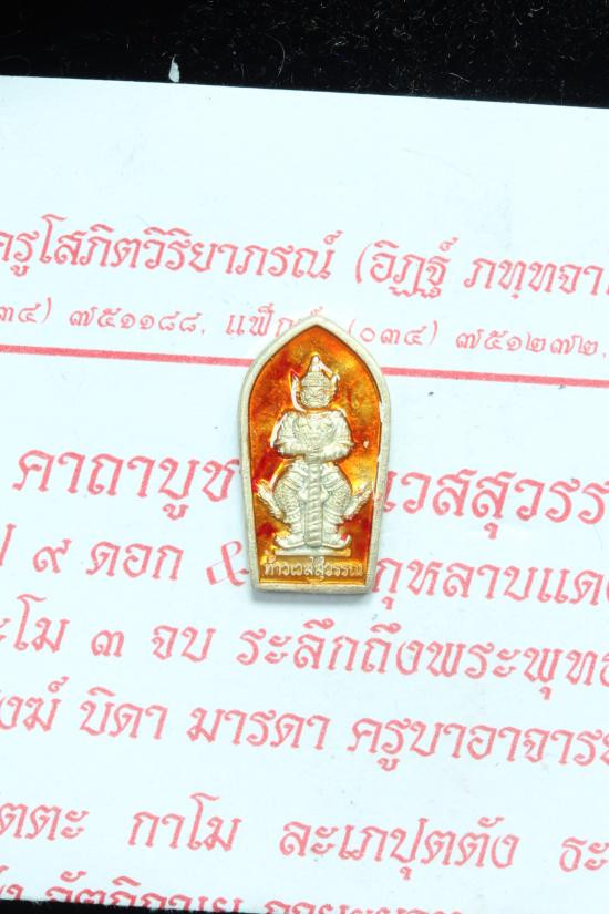 $วัดใจค่ะ รูปหล่อท้าวเวสสุวรรณ รุ่น จ้าวกุเวรน้อย ขนาด 3.5 CM หลวงพ่อพัฒน์ วัดห้วยด้วน จ.นครสวรรค์ เนื้อทองแดง ชุบซาติน ลงยาทรงเครื่องฟ้า หน้ากากป้ายชื่อจ้าวกุเวรน้อยชุบทองแท้ เลข ๑๘๗ กล่องเดิมค่ะ$ |