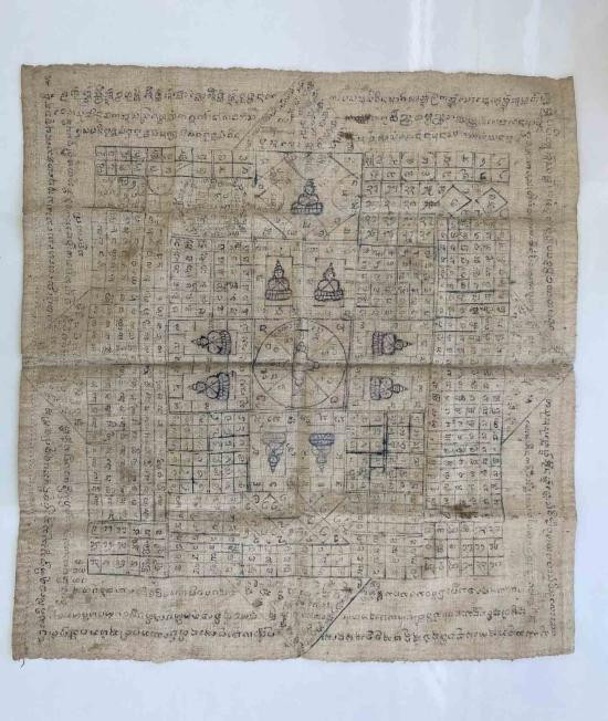 ผ้ายันต์ล้านนาเก่า ขนาด 47.5x44.5 ซม. ผืนใหญ่ รับไปใส่กรอบแขวนที่บ้านหรือร้านค้า ดูสวยงามเข้มขลังมากๆครับ ไม่ทราบที่ |