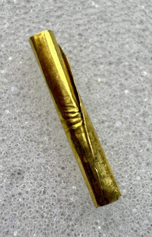 ตะกรุดทองคำ มีจาร ไม่ทราบที่ ยาว ครึ่งนิ้ว |