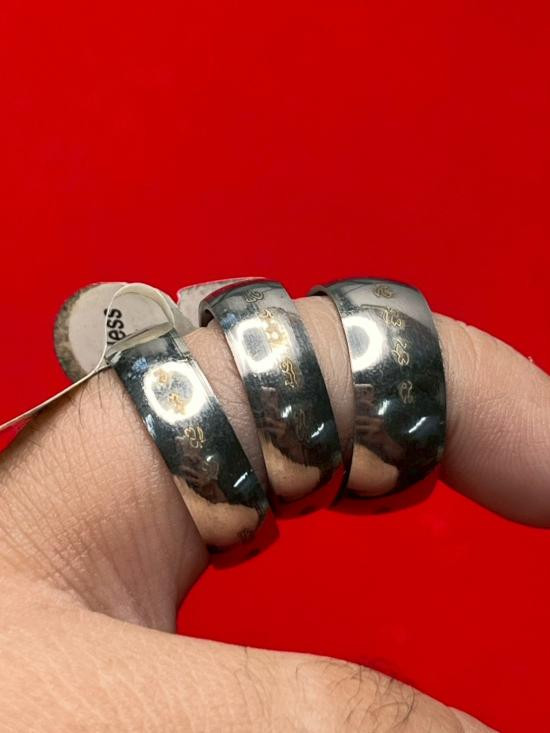 แหวนมหาพญาครุฑ เนื้อเงิน พระอาจารย์วราห์ ปุญญวโร แห่งวัดโพธิ์ทอง ตอกโค๊ด หมายเลข 246 ขนาด 57 เคาะเดียวแดง 1,500 บาท |