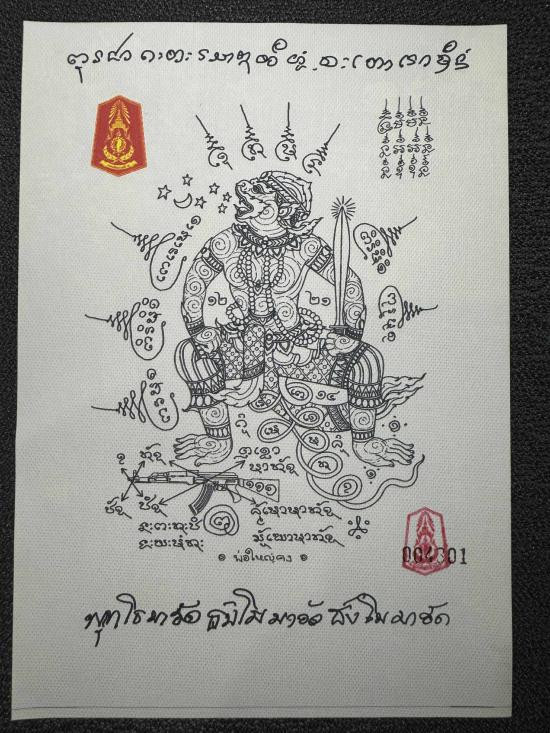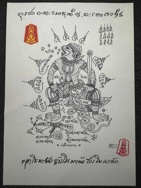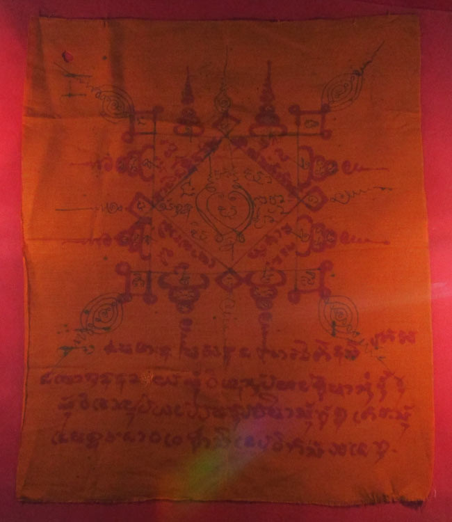 ผ้ายันต์ ไม่ทราบที่ จารยันต์ด้วยมือ เนื้อผ้าจีวร ครับ (พระบ้าน ครับ) |