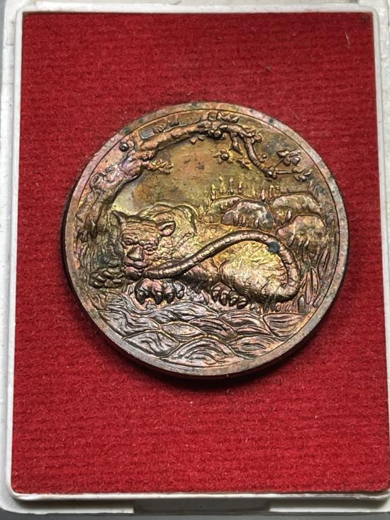 ชื่อพระเครื่อง เหรียญ { พญาเสือนอนกิน รุ่นสอง }เนื้อประกายรุ้ง พระอาจารย์ประสูติ " วัดในเตา " จ.ตรัง ปี60 เลข97 |