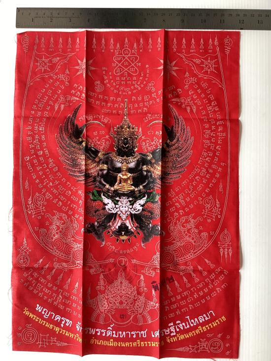 เคาะเดียวแดง 100 ผ้ายันต์ พญาครุฑ รุ่น เศรษฐีเงินไหลมา วัดพระศรีมหาธาตุวรมหาวิหาร จ.นครศรีธรรมราช สีแดง ขนาด A3 ขนาด 11.5 นิ้ว x 16.5 นิ้ว |