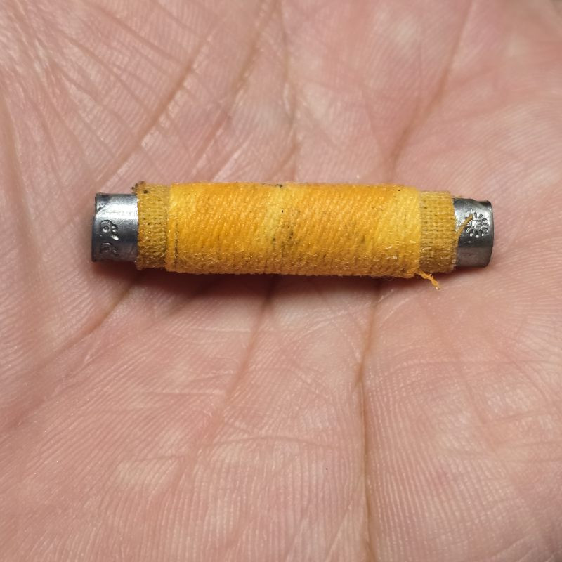 ล้มมวยตะกรุดพอกครั่งอุดผงเก่าเนื้อทองแดงยาวประมาณ4.5นิ้ว |