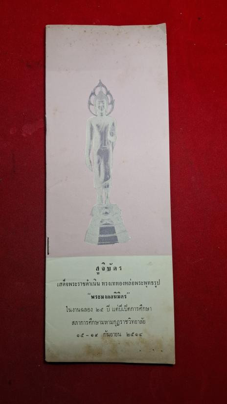 สูจิบัตรงานพิธีเททองหล่อพระพุทธรูป "พระมงคลนิมิตร" วัดบวรนิเวศ ปี 2514 หาชมยากครับ ไว้ศึกษาหรือเก็บที่ระลึกครับ |