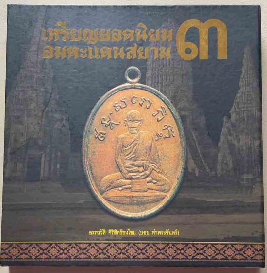 หนังสือเหรียญยอดนิยม อมตะแดนสยาม ๓ บอย ท่าพระจันทร์ สภาพสวย กล่องเดิม พร้อมลายเซ็น |