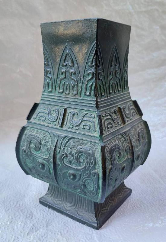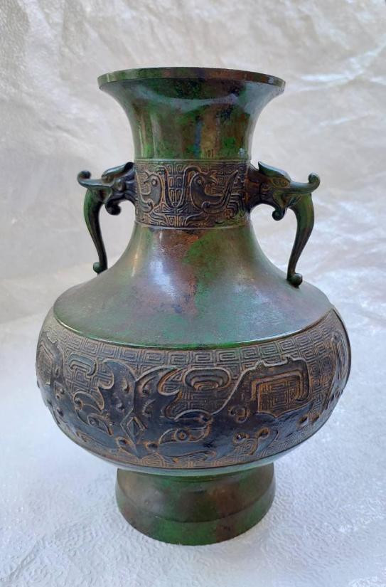 ***วัดใจ***แจกันสำริดเก่าทรงโบราณ หูมังกร สูง 11 นิ้ว กว้างสุด 8.5 ปาก 4.5 นิ้ว ใบนี้หนัก 1 โลกว่าๆ