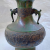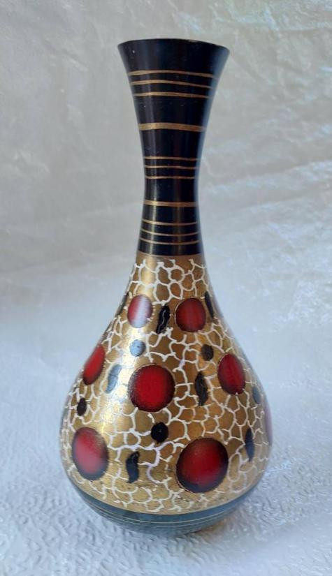 ***วัดใจ***แจกันเก่าทรงโบราณ เนื้อโลหะ เพ็นลายทองจุดแดง สูง 8 นิ้ว