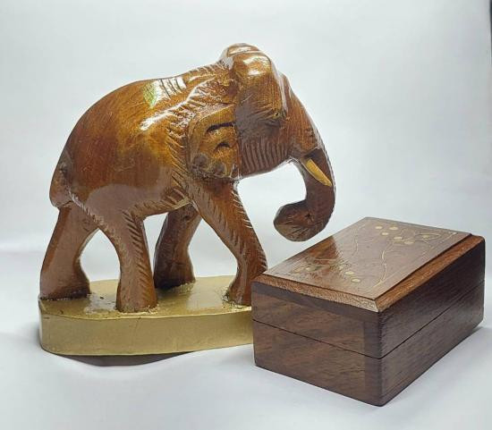 ตลับไม้เล็ก กับ ช้างแกะสลักไม้สัก สูง 4 นิ้ว