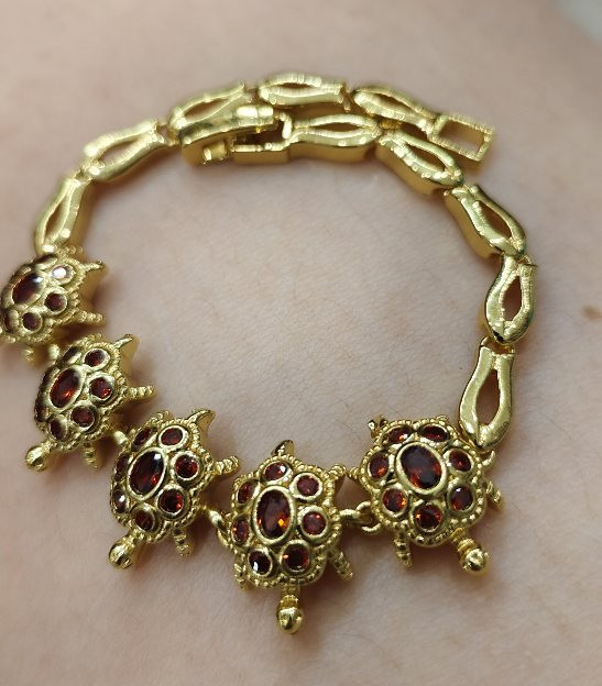เทขาดทุน+ กำไลแขนเต่าพลอยแดงโกเมน ยาว 7.นิ้ว งานจิวเวลลี่ชุบทองแท้ |