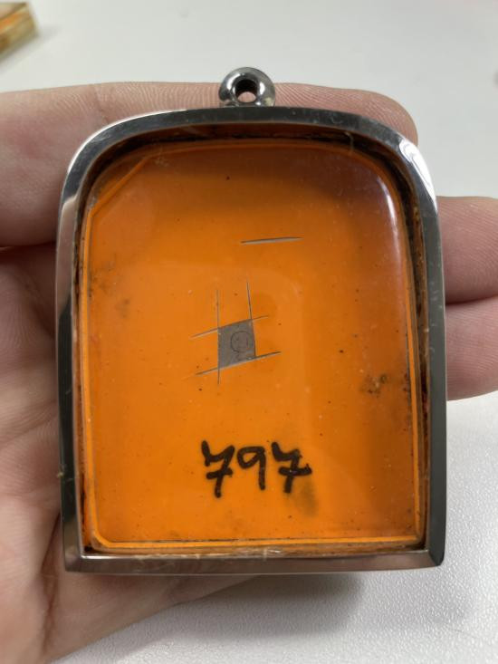 150 ตลับมือสอง ทรงพระสมเด็จ สภาพสวย ปิดหลัง มีห่วง ขนาด สูง 4.4 ซม * กว้าง 3 ซม.(3) |