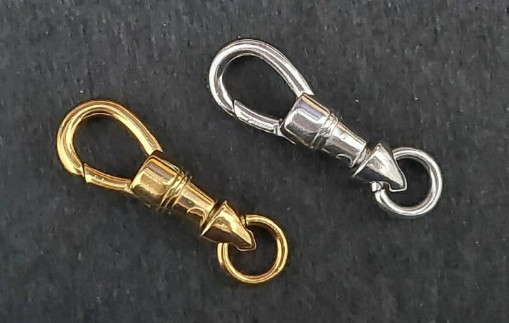 สปริงก้ามปูสแตนเลส + สปริงก้ามปูสแตนเลสเลเซอร์ทอง หมุนได้ ขนาดไม่รวมห่วง 2.6 ซ.ม. |
