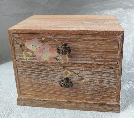 กล่องไม้ลิ้นชักขนาดเล็ก Vintage Japanese ขนาด 14x12xสูง20ซม.จากเปลือกเชอร์รี่(ต้นซากุระ)รอบใบ |