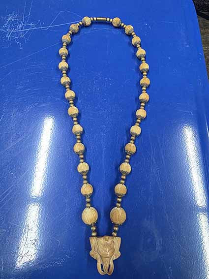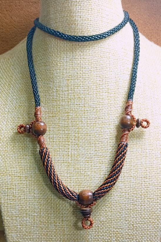 สร้อยคอเชือกเทียน งานถักมือ ( สีดำ-แซมน้ำตาล + แซมลูกปัดไม้ธรรมชาติ ห้อยพระ 3 องค์ ) ยาว26นิ้ว ครับ |