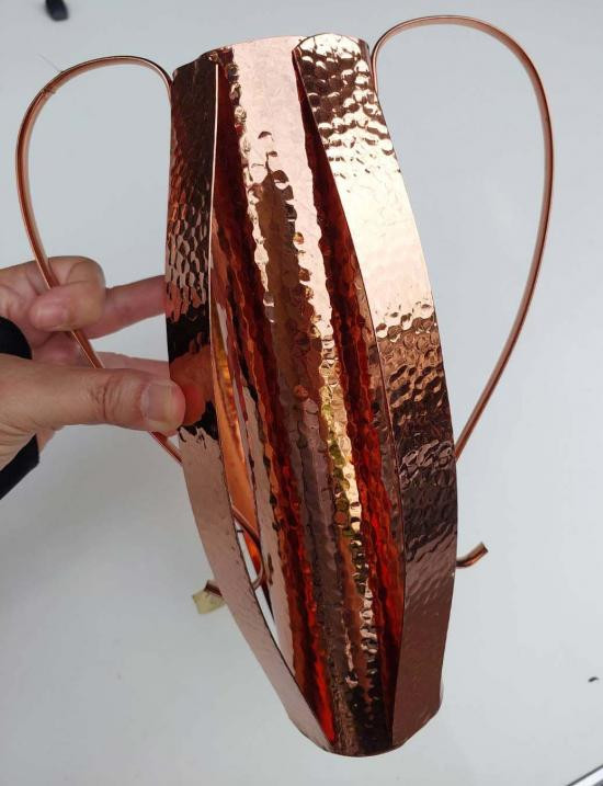 ***วัดใจ***แจกันดอกไม้บรอนซ์ยี่ห้อ Brama จากอังกฤษ สภาพวินเทจ ไม่เคยใช้งาน ผิวเคลือบทองแดงแบบตอกลายหายาก |