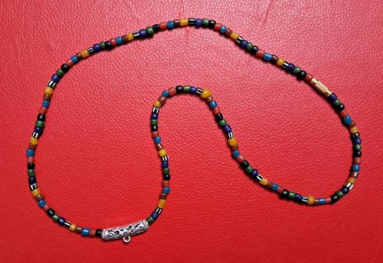 สร้อยคอลูกปัดทราวดี ลูกปัดโบราณสวยๆ ความยาว 24 นิ้ว สวมหัวได้หรือหมุนเกลียวทองเหลืองถอดออกก็ได้ สามารถห้อยพระได้ 1 องค์ (กท.23) |