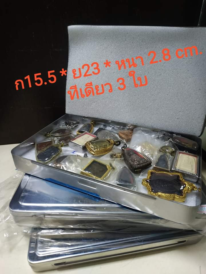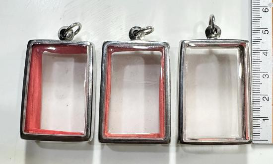 ตลับมือสองสแตนเลสทรงสี่เหลี่ยมใส่สมเด็จทั่วไปได้ 3 ใบแบบเปิดหน้า-หลังขนาด 4 x 3 ซม. |