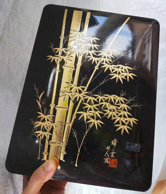 ***วัดใจ***กล่องไม้กล่องแลคเกอร์ญี่ปุ่น (Japanese lacquerware box) ที่มีลวดลายต้นไผ่สีทอง ที่มีความประณีต ซึ่งมีชื่อเสียงในด้านความทนทานเป็นพิเศษ ขนาด9*12 นิ้ว หนา 3 นิ้ว เก็บอุปกรณ์พระเครื่อง |