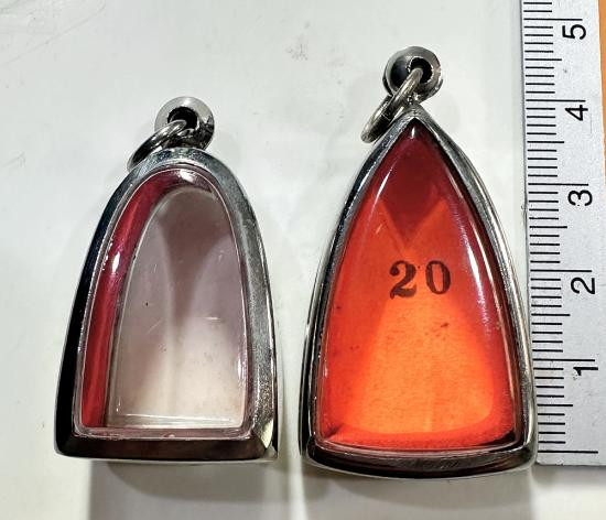 ตลับมือสองสแตนเลสทรงสามเหลี่ยมใส่พระหลวงปู่ทวดได้ 2 ใบ |