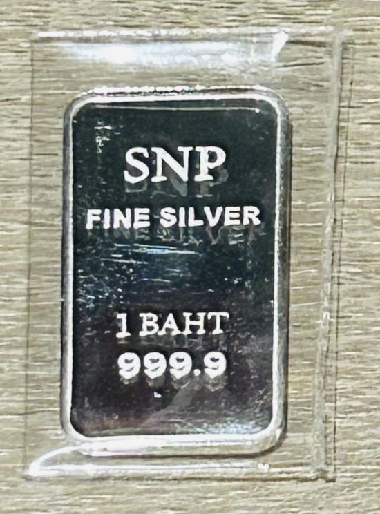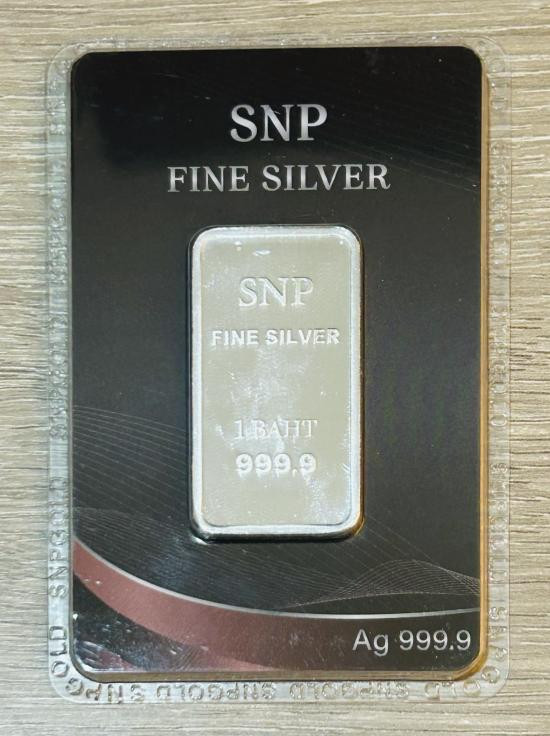 เงินแท่ง 999.9% ร้าน SNP ซิงแสงนภา ร้านดังยอดฮิต ขนาด 1 บาท พร้อมแพ็คเกจ และบัตรรับประกันจากร้านทองตัวแทนจำหน่าย |