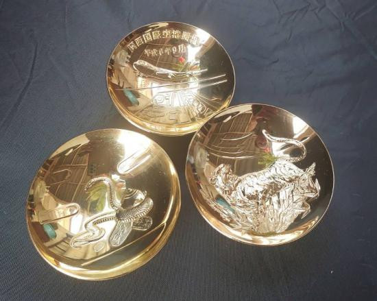 ***วัดใจ ***ชุดพานของสะสม งานนอก 24k GPชุบทองคำ 99%. ลายมงคล 3 ชิ้น สวยๆ |