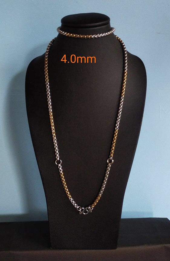 สร้อยลายผ่าหวายเนื้อดำ โลหะสเเตนเสล 304 เเท้ ขนาด3.5 mm ยาว 26 นิ้ว |