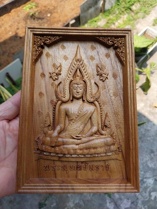 เคาะแรกแดง !!! ไม้สักแกะสลักมงคล.หลวงปู่ดู่ กว้าง14ซม. สูง 20 ซม หนา 2.3 ซม +ขาตั้ง |