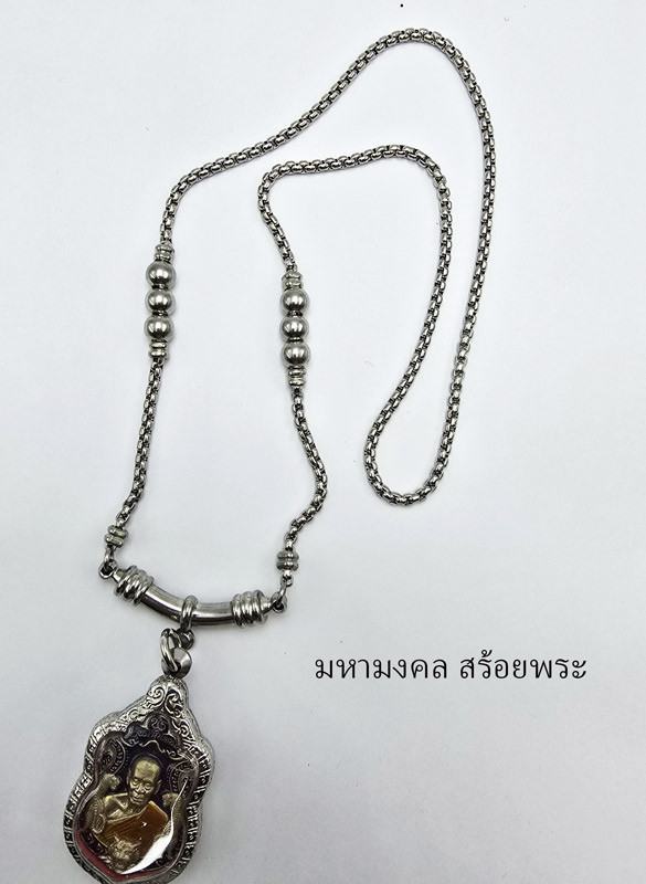 ***วัดใจ***สร้อยเชือกร่มผสมแสตนเลส ยาว 28 นิ้ว คล้องพระได้ 4 องค์กับสร้อยสแตนเลส ขนาด 6 มม ยาว 26 นิ้ว |